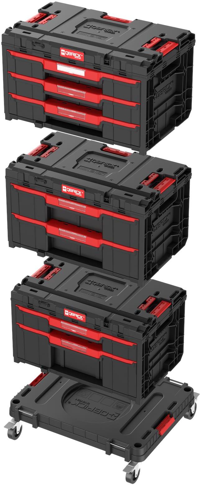 Qbrick System ONE Workshop Drawers SET 2.0 Zapraszamy do zapoznania się z ofertą produktów polskiej marki Qbrick System. Qbrick System stanowi nowe otwarcie na rynku profesjonalnych systemów do przechowywania i transportu narzędzi. Ponad 20 – letnie doświadczenie pozwala zaoferować unikalne rozwiązania, podnoszące komfort i efektywność codziennej pracy fachowców z różnych dziedzin i specjalizacji. Wszystkie produkty marki Qbrick System charakteryzują się przemyślanymi rozwiązaniami oraz wysoką ergonomią. Co więcej - moduły oferowane w ramach podstawowych linii produktowych są segmentowe, dzięki czemu to Ty decydujesz, jaka konfiguracja skrzyń jest dla Ciebie najlepsza. Dlaczego Qbrick System One? Qbrick System One to modularne i mobilne warsztaty narzędziowe stworzone do pracy wnajtrudniejszych warunkach. Ze względu na swoją odporność i wytrzymałość Qbrick System One doskonale poradzi sobie nawet w ekstremalnych sytuacjach Najważniejsze cechy Qbrick System One Wytrzymałość na nacisk do 120 kg. Odporność na najcięższe warunki budowlane. Uszczelka w pokrywie pozwala w szybki i bezpieczny sposób umyć skrzynie (np.myjką ciśnieniową) bez ryzyka zalania narzędzi. Wytrzymałe, pojemne i funkcjonalne skrzynie Qbrick System można łączyć zgodnie z indywidualnymi potrzebami w dowolne kombinacje (Qbrick System One doskonale łączy się także z Qbrick System Pro). Trzypunktowy system łączenia skrzyń Qbrick System One wykorzystuje wyjątkowo trwałe poliamidowe zatrzaski, pozwalające na transportowanie ciężarów o dużej wadze. Zapięcia (dwuczęściowe, składane) oraz łączniki skrzyń Qbrick System One cechuje wyjątkowa wytrzymałość. Skrzynie wchodzące w skład zestawu Qbrick System One wykonane z technicznego poliamidu są odporne na uszkodzenia mechaniczne i nie rdzewieją. Dzięki elastycznej uszczelce i hermetycznej konstrukcji gwarantujemy wysoki poziom bezpieczeństwa dla wartościowych narzędzi. Qbrick System One wykazuje wysoką odporność na wodę i pył, posiada duże, regulowane przegrody oraz przemyślane akcesoria dodatkowe. Standardowe wymiary Systemu One: 585mm (szerokość), 385mm (długość). Wysokość zależy od wyboru konkretnej wersji. Qbrick System ONE Drawer 2 Plus Toolbox 2.0 Oferujemy Państwu nowoczesny i funkcjonalny system szuflad Qbrick System ONE Drawer 2 Plus Toolbox 2.0, idealny dla każdego majsterkowicza oraz profesjonalisty. Produkt charakteryzuje się wysoką jakością wykonania oraz licznymi praktycznymi rozwiązaniami, które ułatwiają organizację narzędzi i akcesoriów. Szuflady w tej wersji nie posiadają stalowego rygla Kluczowe cechy produktu Wytrzymałe poliamidowe konektory: Zapewniają solidne połączenie modułów, co gwarantuje stabilność i trwałość. Możliwość łączenia z modułami Qbrick System PRO: Łatwo dostosujesz system do swoich potrzeb, łącząc go z innymi modułami Qbrick. Regulowane przegrody z ABS: Każda szuflada wyposażona jest w przegrody, które umożliwiają dowolną organizację przestrzeni. Dedykowane miejsce na opis zawartości szuflady: Ułatwia szybkie znalezienie potrzebnych przedmiotów. 4 koła skrętne z hamulcami: Ułatwiają manewrowanie po równych powierzchniach, zapewniając mobilność i stabilność. Wykonanie ze wzmocnionego tworzywa: Gwarantuje trwałość i odporność na uszkodzenia. Wygodny stopień do manewrowania: Ułatwia przemieszczanie całego systemu. Dedykowane miejsce pod wiadro: Idealne rozwiązanie do przechowywania dodatkowego wyposażenia. 4 punkty uchwytów montażowych: Umożliwiają łatwy montaż i zabezpieczenie systemu. Skład Zestawu Qbrick System ONE Drawer 3 Toolbox 2.0 Wymiary wewnętrzne szuflad: 467 (L) x 286 (W) x 68 (H) [mm] Pojemność jednej szuflady: 9 l (cały moduł 27 l) Dwie szuflady wyposażone w regulowane przegrody z ABS (maksymalnie 16 oddzielnych komór) Dolna szuflada bez przegród Szuflady w tej wersji nie posiadają stalowego rygla Qbrick System ONE Drawer 2 Toolbox 2.0 Wymiary wewnętrzne szuflad: 467 (L) x 286 (W) x 108 (H) [mm] Pojemność jednej szuflady: 14,5 l (cały moduł 29 l) Jedna szuflada wyposażona w regulowane przegrody z ABS (maksymalnie 12 oddzielnych komór) Dolna szuflada bez przegród Szuflady w tej wersji nie posiadają stalowego rygla Qbrick System ONE Drawer 2 Plus Toolbox 2.0 Wymiary wewnętrzne szuflad: Niska: 467 (L) x 286 (W) x 68 (H) [mm] Wysoka: 467 (L) x 286 (W) x 148 (H) [mm] Pojemność: Niska szuflada: 9 l Wysoka szuflada: 20 l (cały moduł 29 l) Niska szuflada wyposażona w regulowane przegrody z ABS (3 długie i 12 krótkich przegród) Wysoka szuflada bez przegród Szuflady w tej wersji nie posiadają stalowego rygla Dodatkowe cechy Automatyczny system blokowania każdej szuflady: Zapewnia bezpieczeństwo przechowywanych narzędzi. Metalowe prowadnice szuflad: Gwarantują płynne i trwałe działanie. Korpusy szuflad wykonane z mocnego ABS: Zapewniają wytrzymałość na uszkodzenia. Możliwość zawieszenia szuflad na ścianie: Za pomocą Custom Connectors lub klasycznych kołków. Dlaczego warto wybrać Qbrick System ONE Drawer 2 Plus Toolbox 2.0? To idealne rozwiązanie dla osób ceniących porządek w miejscu pracy. Modułowy system pozwala na dowolną konfigurację i rozbudowę zestawu według indywidualnych potrzeb. Wysoka jakość materiałów oraz precyzja wykonania gwarantują długotrwałe użytkowanie.