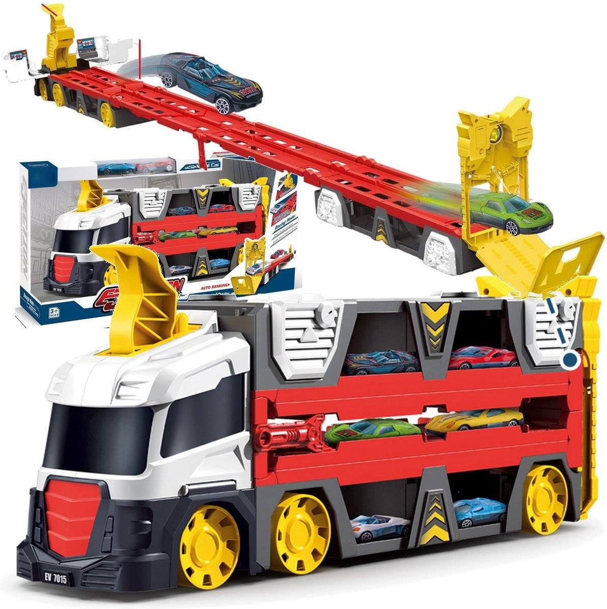 Auto laweta tor wyścigowy150 cm parking+ metalowe autka Auto laweta tor wyścigowy parking+ metalowe autka Każdy mały fan motoryzacji zobaczywszy auto lawetę takich rozmiarów i zastosować już nie będzie mógł się doczekać by rozpocząć różnorodną zabawę. Duży tir-laweta parking jest sporych rozmiarów …