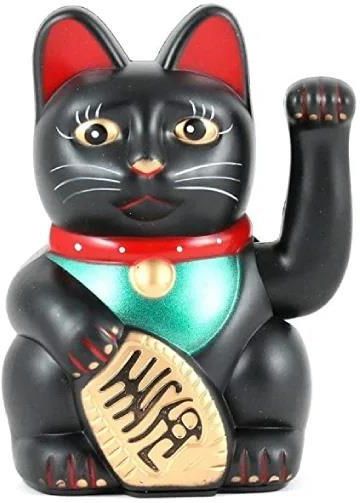 Chiński Kot Przynoszący Szczęście 15cm Czarny Łochów