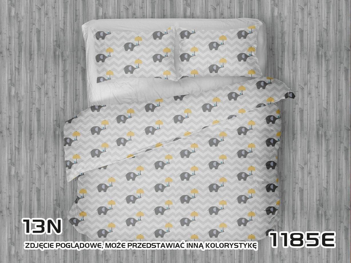 Extrapościel Pościel Bawełniana 90x120 1185E Słoniki Szare Zygzak Biały Parasol Żółty Łochów