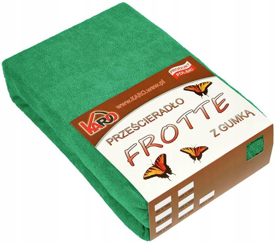 Prześcieradło frotte z gumką 200x200 zielone trawiaste 049 grube 200g/m2 KARO Prześcieradło frotte z gumką jest miękkie i przyjemne w dotyku, a spanie na nim to czysta przyjemność. Szeroka gama kolorystyczna pozwoli na dopasowanie koloru prześcieradła do każdej pościeli. Z kolei wysoka jakość zastosowanych materiałów sprawi, że długo będziesz cieszyć się wyborem prześcieradła KARO. Prześcieradło zachowuje swój fason i utrzymuje intensywny kolor nawet po wielu praniach. Do prześcieradła polecamy również pościele dostępne na innych naszych podstronach. Rozmiar: 200x200 cm. Tolerancja rozmiaru +/-3%. Zakład prześcieradła wynosi do 20 cm i nie jest wliczany do rozmiaru. Prześcieradło przeznaczone jest na materace o wysokości do 20 cm, a zakład liczony jest na rogu prześcieradła. Dzięki bokom z narożnymi zaszewkami, profilującymi prześcieradło do kształtu materaca oraz gumce poprowadzonej w tuneliku produkt doskonale dopasowuje się i układa na materacach o różnej grubości. Skład tkaniny: 82% bawełna, 18% poliester. Materiał: frotte - lekko rozciągliwy i niewymagający prasowania, dzięki czemu jest wyjątkowo wygodny w użytkowaniu. Gramatura: 200 g/m2 - najgrubsze prześcieradło na polskim rynku. Prześcieradła frotte z gumką KARO występują w 14 rozmiarach tj. 60x120, 70x140, 70x160, 80x160, 80x200, 90x200, 120x200, 140x200, 160x200, 160x220, 180x200, 200x200, 200x220, 220x240 w ponad 40 kolorach. Przepis konserwacji: prać w temperaturze do 40°C, nie wybielać, nie prasować, nie czyścić chemicznie,suszyć w stanie rozwieszonym. Indeks katalogowy: 215493 Kod kreskowy EAN: 5902837127118 Marka: KARO
