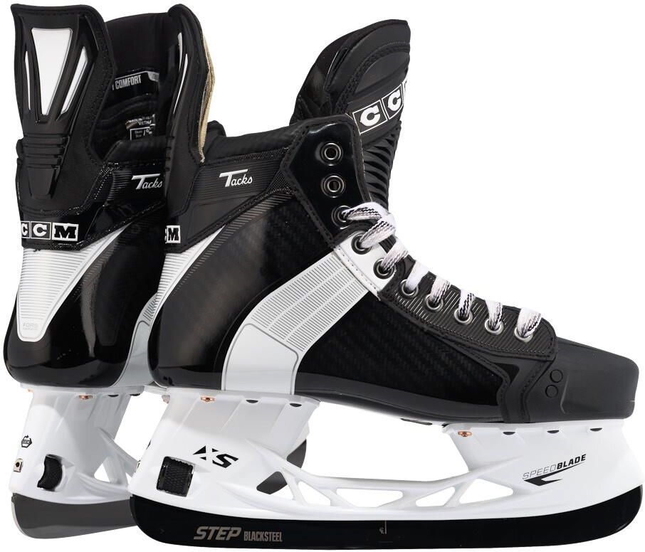 Łyżwy hokejowe - Senior • Profesjonalne • Linia modelowa: Tacks • Preferowany styl jazdy na łyżwach: Power • Krój: Anatomiczny • Termoformowanie: Tak • Holdery: SpeedBlade XS • Ostrza : Step Blacksteel + 4mm