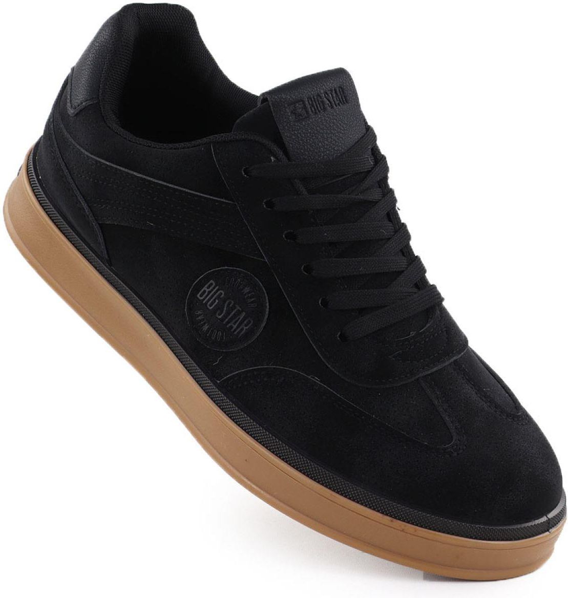 Sneakersy Męskie BIG STAR Buty Sportowe Miejskie Półbuty Czarne SS174019 41 Rozmiarówka zaniżona o 1,5 rozmiaru – rekomendujemy wybór większego. Buty zostały zmierzone przez nas osobiście w celu zapewnienia jak największej dokładności. MARKOWY PRODUKT Produkt obfituje w liczne detale potwierdzające autentyczność, takie jak wytłaczane logo BIG STAR w materiale lub charakterystyczny metalowy emblemat. GALERIA ZDJĘĆ DLACZEGO WARTO POSTAWIĆ NA TEN MODEL? Męskie sneakersy BIG STAR SS174019 to nowoczesne buty sportowe idealne na co dzień, które zachwycają połączeniem stylu i komfortu. Wykonane z wysokiej jakości ekoskóry, prezentują się jako modne półbuty, trampki i adidasy w jednym – idealne do jeansów i streetwearu. Ich design podkreśla czarna cholewka zestawiona z kontrastującą karmelową podeszwą, co nadaje im charakteru i unikalności. PARAMETRY W SKRÓCIE Wysokogatunkowa ekoskóra zapewnia trwałość i estetykę Wkładka Hi-Poly System gwarantuje wyjątkowy komfort podczas całodziennego użytkowania Sportowy krój sprawia, że buty idealnie dopasowują się do stopy i nie obciążają jej Kontrastowa podeszwa w kolorze karmelowym dodaje wyrazistego stylu Miękka wyściółka dba o wygodę nawet przy długim chodzeniu Sznurowanie na pięć dziurek pozwala na dopasowanie szerokości i pewne trzymanie stopy Wysokość podeszwy/obcasa: 3,5cm Cholewka: skóra ekologiczna Wkładka: tkanina ROZMIARÓWKA 40 - 25,5 cm 41 - 26,2 cm 42 - 26,7 cm 43 - 27,4 cm 44 - 27,9 cm 45 - 28,3 cm