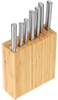 Zestaw noży SALTER P8HX6V5 (8 elementów) Liczba elementów [szt]: 8 Możliwość mycia w zmywarce: Tak Ostrze: Stal nierdzewna Rękojeść: Stal nierdzewna Długość ostrza [cm]: 8.9, 12.7, 17.8, 20.3 Typ: Do pieczywa, Do warzyw, Szefa kuchni, Uniwersalny Indeks: 526617 Zestaw noży kuchennych Salter w stylu japońskim z blokiem bambusa. Zestaw zawiera 8-calowy nóż szefa kuchni, noże do chleba, 7-calowy nóż Santoku z ząbkami, 5-calowy nóż uniwersalny, 3,5-calowy nóż do obierania i 7,8-calową ostrzałkę do noży. Wyprodukowany z wysokiej jakości stali nierdzewnej. Dzięki stożkowo szlifowanym ostrzom te noże są doskonale wyważone co zapewnia wydajne siekanie, krojenie w plastry i kostki. W pełni bezszwowa higieniczna konstrukcja zapobiega degradacji. Noże są przechowywane w nowoczesnym bloku z drewna bambusowego, co zapewnia wygodne przechowywanie, a zestaw zawiera poręczną ostrzałkę do ostrzenia, aby zachować idealną precyzję ostrza. Liczba elementów [szt]: 8 Możliwość mycia w zmywarce: Tak Ostrze: Stal nierdzewna Rękojeść: Stal nierdzewna Blok: Tak Długość ostrza [cm]: 8.9 12.7 17.8 20.3 Linia: Nie dotyczy Listwa magnetyczna: Nie Ostrzałka w zestawie: Tak Rodzaj: Zestaw noży Typ: Do pieczywa Do warzyw Szefa kuchni Uniwersalny Załączona dokumentacja: Instrukcja obsługi w języku polskim Karta gwarancyjna Funkcje: Możliwość mycia w zmywarce