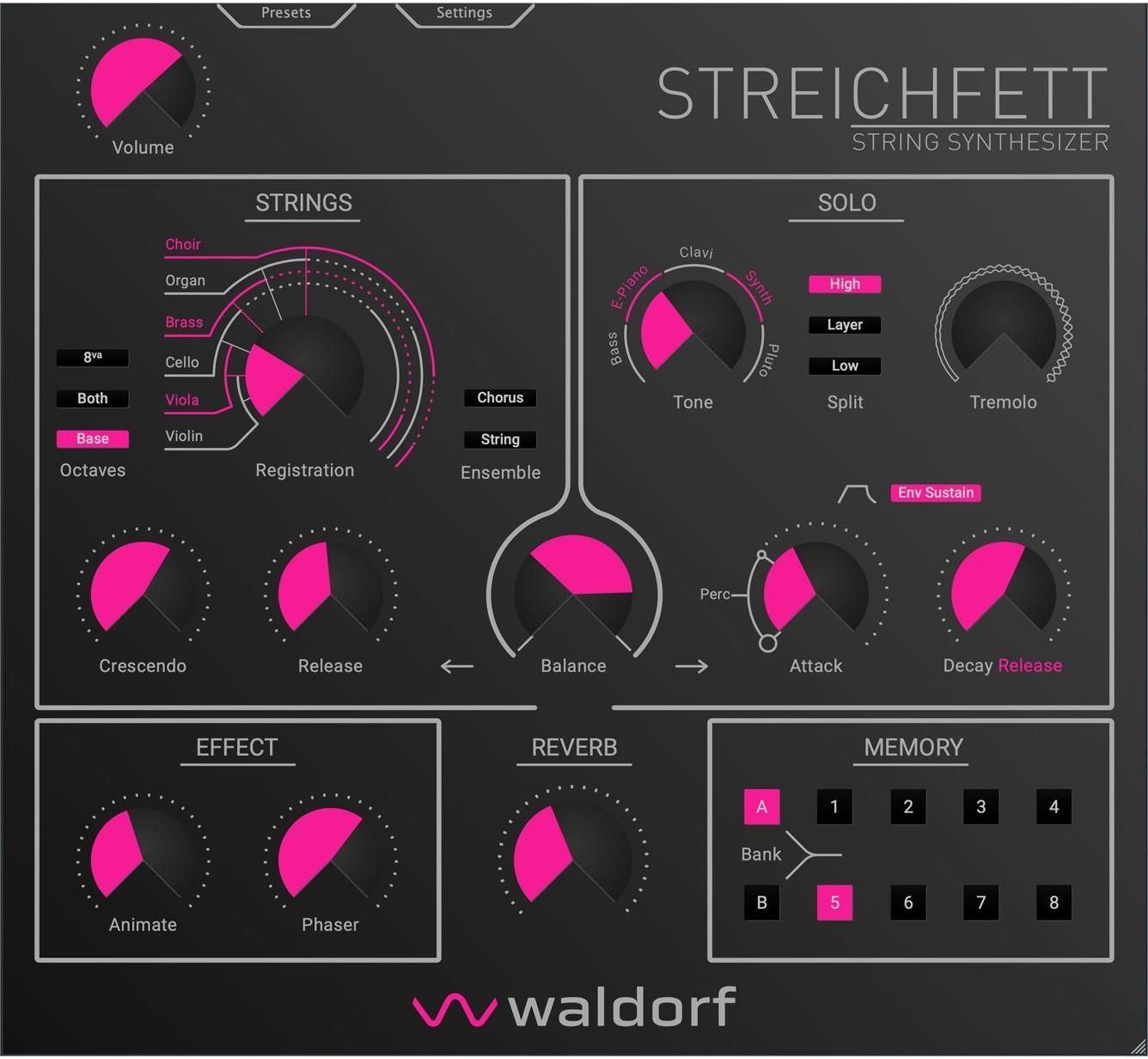 Waldorf Streichfett plug-in ilnik dźwiękowy legendarnego Waldorf Streichfett jest teraz dostępny jako wtyczka do Twojego DAW. Tłuste brzmienie we wszystkich popularnych formatach (VST3, VST2, AU, AAX). Przejrzysty interfejs użytkownika oferuje bezpośredni dostęp do wszystkich ważnych parametrów …