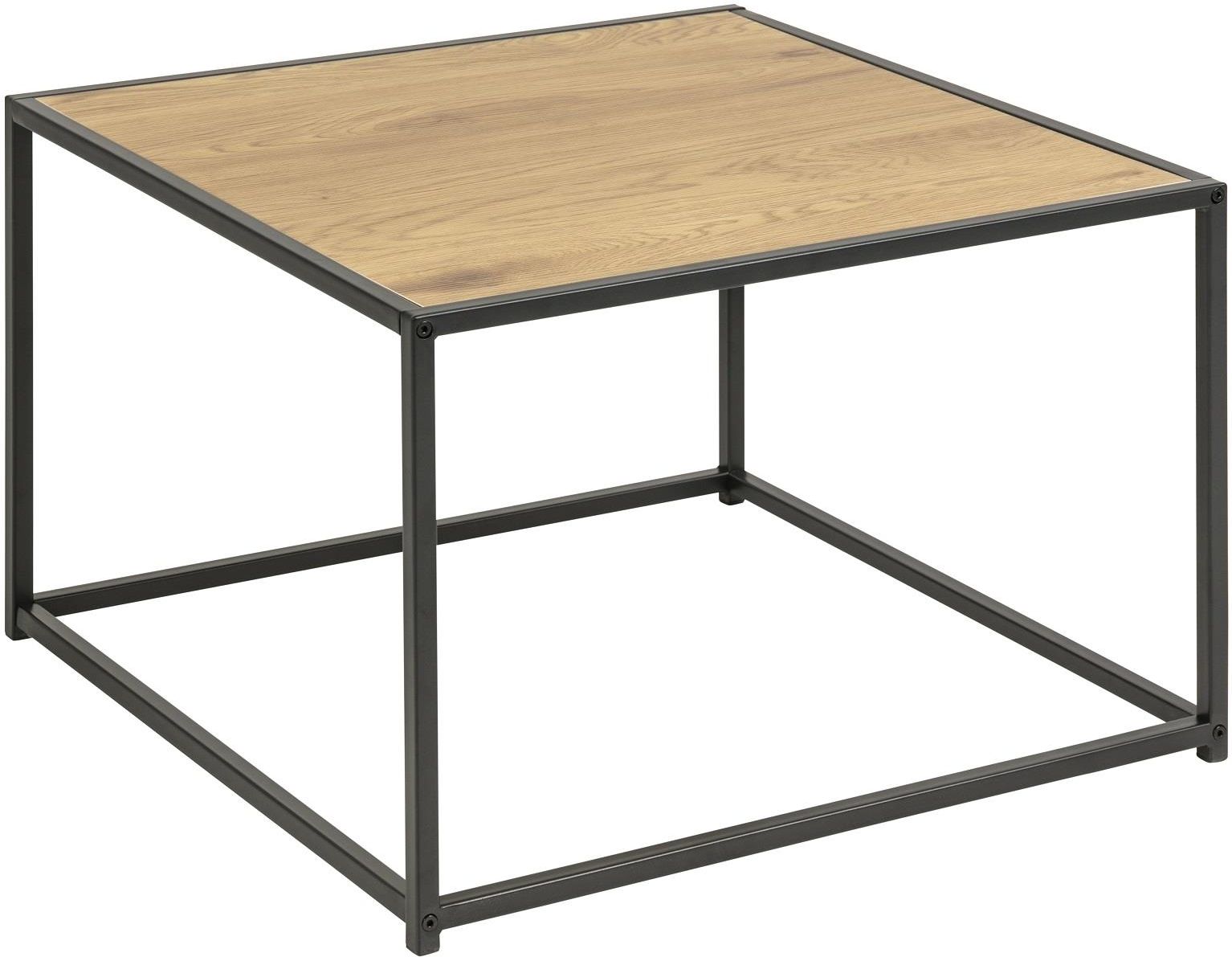 STOLIK KAWOWY SEAFORD 60X60CM DĄB DZIKI Kwadratowy stolik kawowy sprawdzi się w wielu nowoczesnych wnętrzach. Wykonany w minimalistycznym stylu z metalowej, czarnej podstawy i blatu w kolorze dzikiego dębu będzie stanowił elegancki dodatek w salonie. W serii SEAFORD występują regały, komody, konsole, biurka i stoliki o różnych wymiarach. Stolik kawowy Seaford kwadratowy, blat matowy, dąb dziki, papier szorstki, podstawa matowa, czarna, szorstka, malowana proszkowo stal, 60x60x40 cm