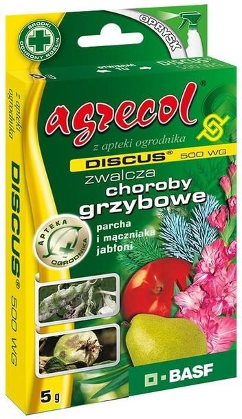 Discus 500 WG jest fungicydem w formie granul do sporządzania zawiesiny wodnej o działaniu lokalnie układowym do stosowania zapobiegawczego w ochronie przed chorobami grzybowymi jabłoni, gruszy, porzeczki czarnej, porzeczki czerwonej, porzeczki białej, agrestu, borówki wysokiej, żurawiny, drzew …