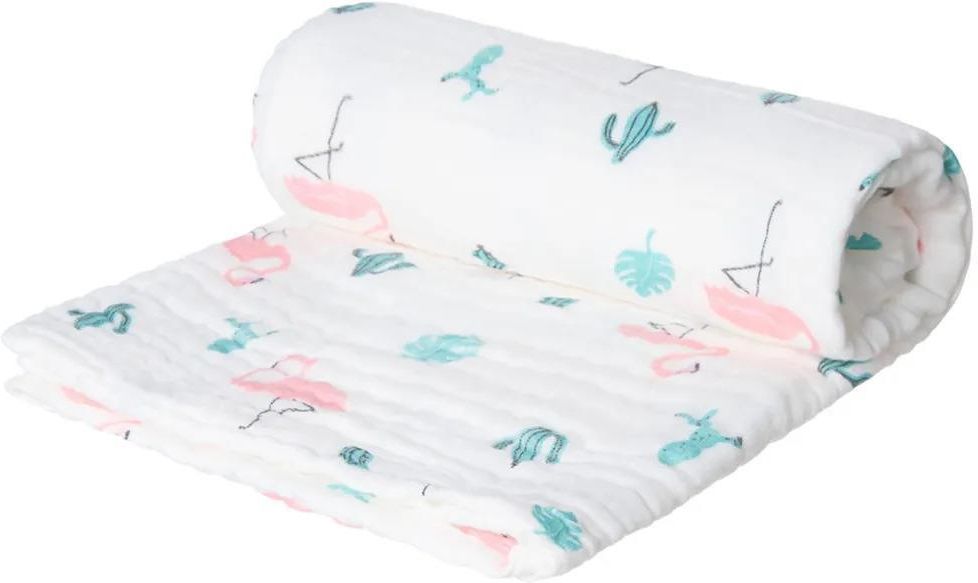 Akuku Kocyk muślinowy otulacz 110 x 105 cm Flamingi Łódź