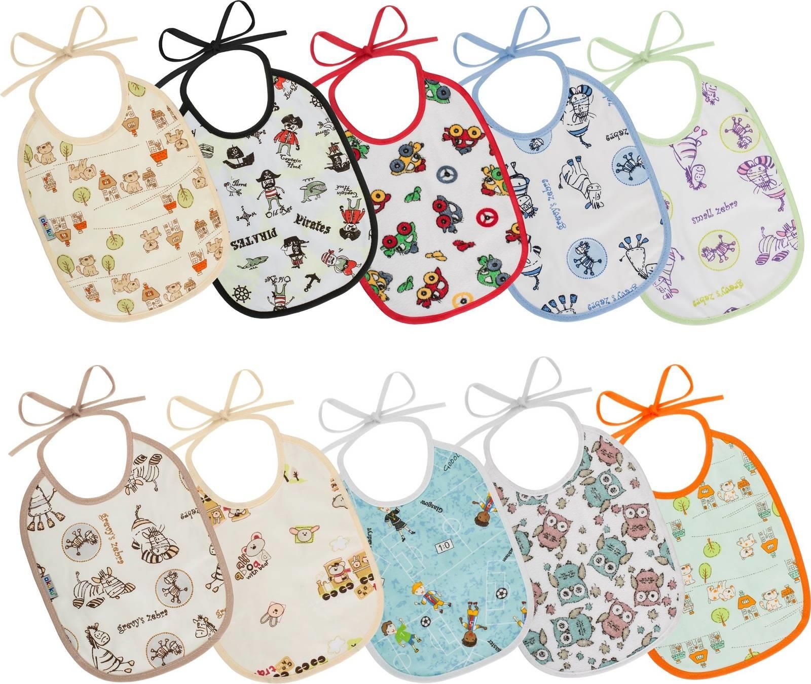 Śliniak wykonany jest z wysokiej jakości bawełny. Wewnętrzna część została podszyta wodoodporną warstwą z miękkiej ceratki, która dodatkowo zabezpiecza ubranie przed zabrudzeniem i czyni śliniak nieprzemakalnym. Wygodne i praktyczne wiązanie podnosi komfort noszenia śliniaka, a kolorowe aplikacje umilają dziecku posiłek. Wyprodukowany w Polsce. Skład: bawełna / zmiękczona ceratka PVC Rozmiar: 18 cm (szerokość) x 19 cm (długość od szyi) Różne wzory. Produkty sprzedawane oddzielnie w zależności od dostępności. Przed zakupem prosimy o informację, który wzór został wybrany. W przypadku nie podania wzoru towar zostanie wysłany losowo.