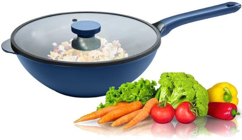 61295 Patelnia wok z powłoką Qualum Ceramic Cobalt 30 cm AMBITION Patelnia wok Cobalt o średnicy 30 cm – wykonana z trwałego odlewanego aluminium. Powłoka Qualum Ceramic – ekologiczna, odporna na przywieranie, łatwa w czyszczeniu. Dwustronna wylewka – wygodne odlewanie tłuszczu i sosów. Pokrywka z …