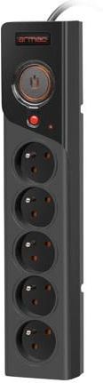 Nowoczesna i wysokiej jakości listwa przeciwprzepięciowa ARMAC Z5 to skuteczne zabezpieczenie dla urządzeń takich jak komputery stacjonarne i mobilne, urządzenia peryferyjne, sprzęt RTV/AGD oraz urządzenia multimedialne. Wysoka jakość potwierdza wieloletnie doświadczenie polskiego producenta ARMAC. Co więcej estetyczny wygląd wraz z wytrzymałą konstrukcją listwy, która została wykonana z samogasnącego tworzywa sprawiają, że jest to najbardziej trafny wybór. PAKIET ZABEZPIECZEŃ ARMAC Listwa zasilająca posiada pięć gniazd sieciowych z uziemieniem wyposażonych w bezpiecznik automatyczny o charakterystyce zwłocznej 10A/250V, który umożliwi ponowne załączenie zasilania w przypadku wystąpienia awarii typu zwarcie/przeciążenie, po usunięciu przyczyny tego stanu. CZOŁOWEJ KLASY WARYSTOR Armac Z5 został wyposażony w czołowej klasy warystor, który zapewnia szybkie działanie - poniżej 25 nanosekund. Warystor pochłania impulsy do 6000A, chroniąc urządzenia podłączone do listwy antyprzepięciowej przed niebezpiecznymi skokami napięcia CHILD PROTECTION ARMAC  w trosce o bezpieczeństwo najmłodszych użytkowników wyposażył listwę w sprawdzony  system Child Protection, dzięki któremu uniemożliwiliśmy dostęp dzieci do wszystkich elementów będących pod stałym napięciem. TECHNOLOGIA FREE CORD Dzięki zaimplementowaniu bezkonkurencyjnej technologii Free Cord, użytkownik otrzymuje możliwość ułożenia kabla zasilającego w 6 możliwych kierunkach, natomiast organizer kabla pozwoli na skrócenie przewodu maksymalnie o 130 cm. CICHY I ELEGANCKI WYŁĄCZNIK QUICK SWITCH Listwa zwraca na siebie uwagę eleganckim i wyważonym designem, który nie tylko urozmaici aranżacje wnętrza, ale dzięki specjalnie zaprojektowanemu dwubiegunowemu wyłącznikowi nożnemu typu Quick Switch zapewni komfortowe użytkowanie. Zintegrowany przycisk daje delikatną niebieską poświatę, informując użytkownika o obecności napięcia. PODWÓJNY SYSTEM MONTAŻU ARMAC Z5 jest produktem uniwersalnym o szerokim wachlarzu zastosowania w domu, biurze, ale również do użytku w warsztatach, sklepach oraz w innych miejscach, w których niezbędne jest podłączenie kilku urządzeń jednocześnie. Smukła sylwetka i autorski system mocowania umożliwia montaż do podłoża na dwa różne sposoby, za pomocą opaski zaciskowej lub wkrętów.   WART TWOJEGO ZAUFANIA Obudowa Armac Z5 wykonana została z wysokiej jakości, samogasnącego tworzywa sztucznego. Dzięki wdrożeniu najnowszych wzorców, zasilacz jest bardzo lekki a obudowa odporna na wszelkie mechaniczne uszkodzenia oraz wstrząsy podczas przenoszenia. Korzystając z listew antyprzepięciowych ARMAC, możesz spać spokojnie. Produkt został objęty 10 - letnią gwarancją oraz ubezpieczeniem OC.   ZAPROJEKTOWANA I WYTWORZONA W POLSCE Listwa Armac Z5 w całości została zaprojektowana i wytworzona z Polskich komponentów. Obudowa, pełne bolce uziemienia, blaszki zasilające, diody, tory prądowe, kable i inne podzespoły zostały wykonane zgodnie z uznaną na cały świecie Polską praktyką inżynierską. Poziom wykonania jest bezkonkurencyjny w stosunku do produktów sprowadzanych. PRODUKT ZGODNY Z NORMAMI EUROPEJSKIMI
