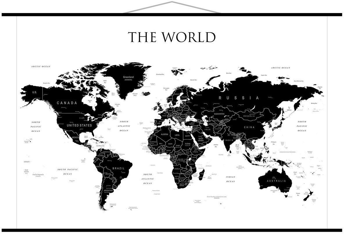 The World-mapa ścienna polityczna-konturowa, zawierająca granice państw wraz z ich stolicami. Mapa utrzymana w czarno-białej tonacji. Dzięki swej wysokiej jakości może być doskonałą ozdobą zarówno domu, biura, jak również, nieprzeciętnym pomysłem na idealny prezent. Mapa oprawiona jest w rurki PCV, …