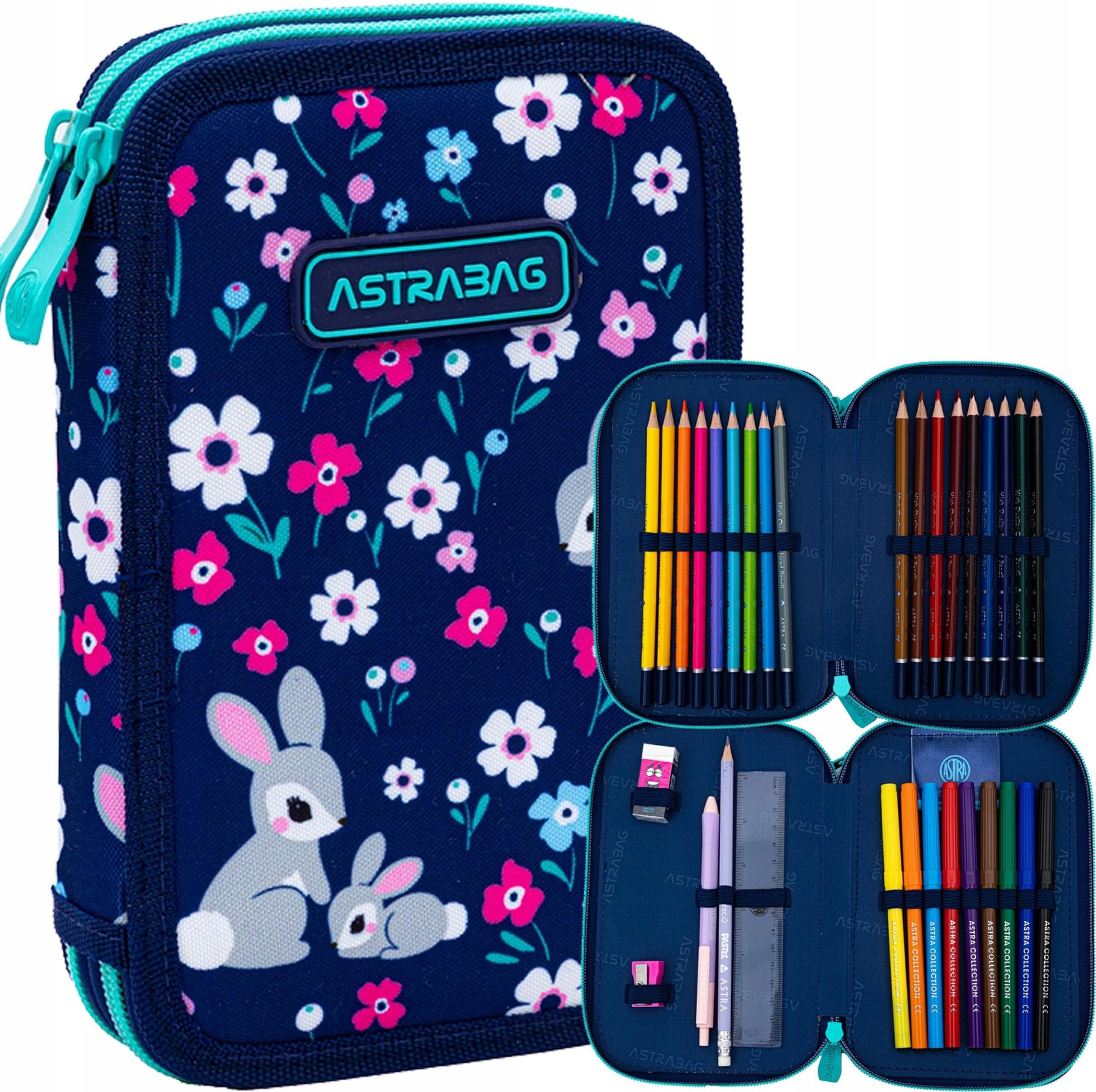 Astra Astrabag Piórnik Szkolny Dwukomorowy Wyposażenie Kredki Pisaki Baby Bunny Łódź