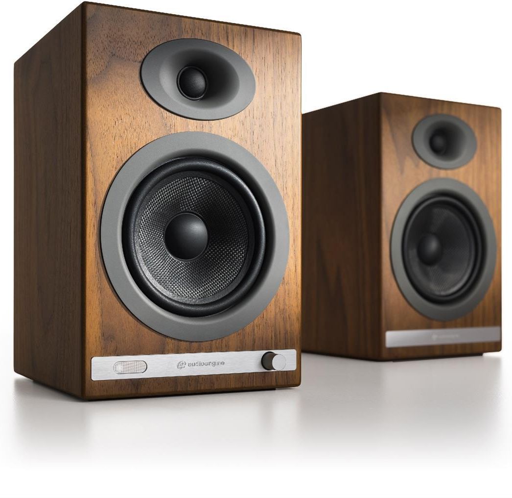 Specyfikacja techniczna Moc głośników (RMS): 50 W Rodzaje wyjść / wejść: S/PDIF - 1 szt.; Wejście 3,5 mm minijack - 1 szt.; Wejście stereo RCA - 1 szt. Łączność bezprzewodowa: Bluetooth Sterowanie: Pilot bezprzewodowy; Przyciski na głośniku Dodatkowe informacje: Zasięg działania bluetooth do 30 metrów; Odtwarzanie AAC; Głośnik wysokotonowy 0,75"; Wersja Bluetooth: 5.2; Obsługiwane kodeki: SBC, APTX HD, APTX Dołączone akcesoria: Pilot; Kabel RCA - RCA; Kabel zasilający; Instrukcja; Kabel połączeniowy głośnika; Torby ochronne z mikrofibry Kolor: Orzech Kod produktu: Audioengine HD5 orzech | HD5o | [*(1275483)*] Galeria