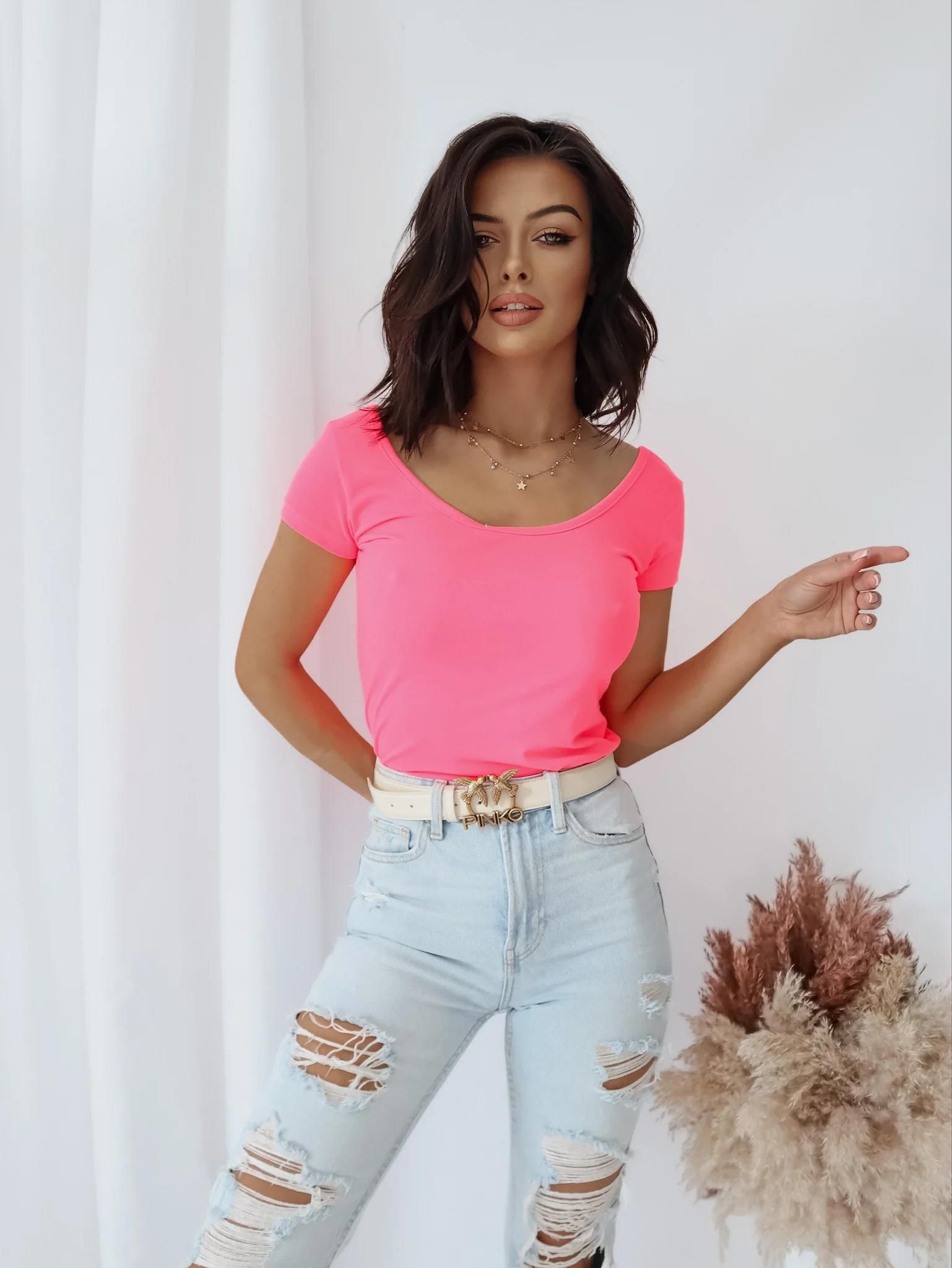 BASICOWA bluzka bawełniana - NEONOWY ROŻOWY - Uniwersalny Łódź