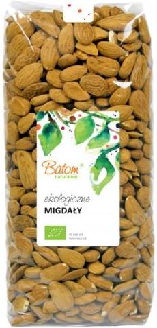 EKOLOGICZNE MIGDAŁY 1KG BATOM BIO Migdały to także szeroko wykorzystywany dodatek do potraw i ciast. masa netto: 1kg składniki: migdały* 100% (*certyfikowany składnik ekologiczny) Wartość odżywcza w 100g wartość energetyczna: 2525kJ/612kcal tłuszcz: 54g w tym kwasy tłuszczowe nasycone: 4,1g węglowodany: 5,4g w tym cukry: 3,9g białko: 19,0g sól: 0,0g Może zawierać alergeny: zboża zawierające gluten, inne orzechy i sezam. Produkt rolnictwa ekologicznego. Wysokiej jakości produkt ekologiczny, certyfikowany. Bez dodatku sztucznych barwników, polepszaczy smaku i konserwantów. Wyprodukowany zgodnie z normami dotyczącymi produkcji żywności i upraw ekologicznych zawartymi w Dzienniku Ustaw z 25 czerwca 2009 r. o rolnictwie ekologicznym (Dz.U. z 2017 r. poz. 1054). Tylko kupując prawidłowo oznakowany produkt (posiadający nr certyfikatu bio) mogą być Państwo pewni, że pochodzi on z atestowanych gospodarstw i przetwórni stosujących ekologiczne metody produkcji.