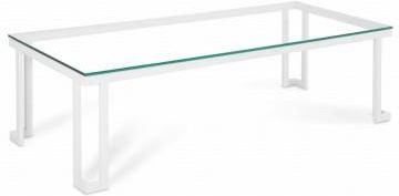 %description% WYMIARY Szerokość: 150 cm Głębokość: 60 cm Wysokość: 41 cm Max. obciążenie: 50 kg Biały stolik ogrodowy Cannes 60x150 Duży, jasny stolik kawowy do ogrodu, na taras i balkon. Transparentny blat stolika ogrodowego podtrzymywany jest przez estetyczną białą konstrukcję z metalu. Całość …