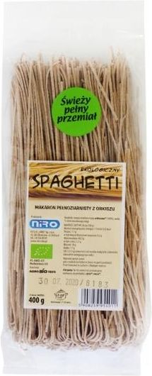 Bio Makaron pełnoziarnisty spaghetti 400g Niro Łódź