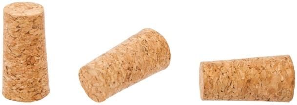 Korek z korka, stożkowy. Przystosowany do korkowania butelek o wewnętrznej średnicy szyjki 14-18 mm.