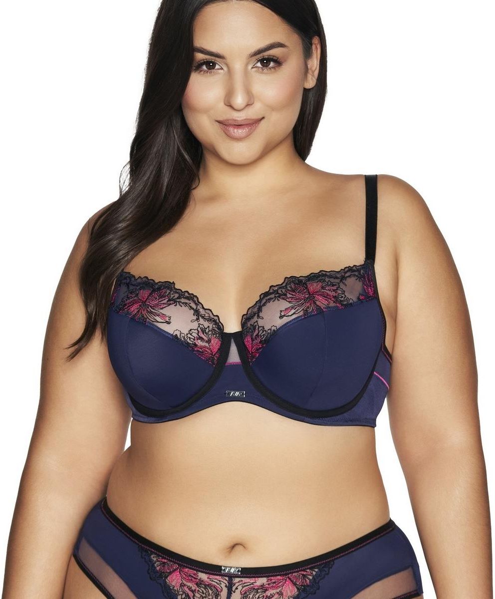 Biustonosz Semi Soft z kwiatowym haftem AV 2119 półusztywniany granatowy Łódź