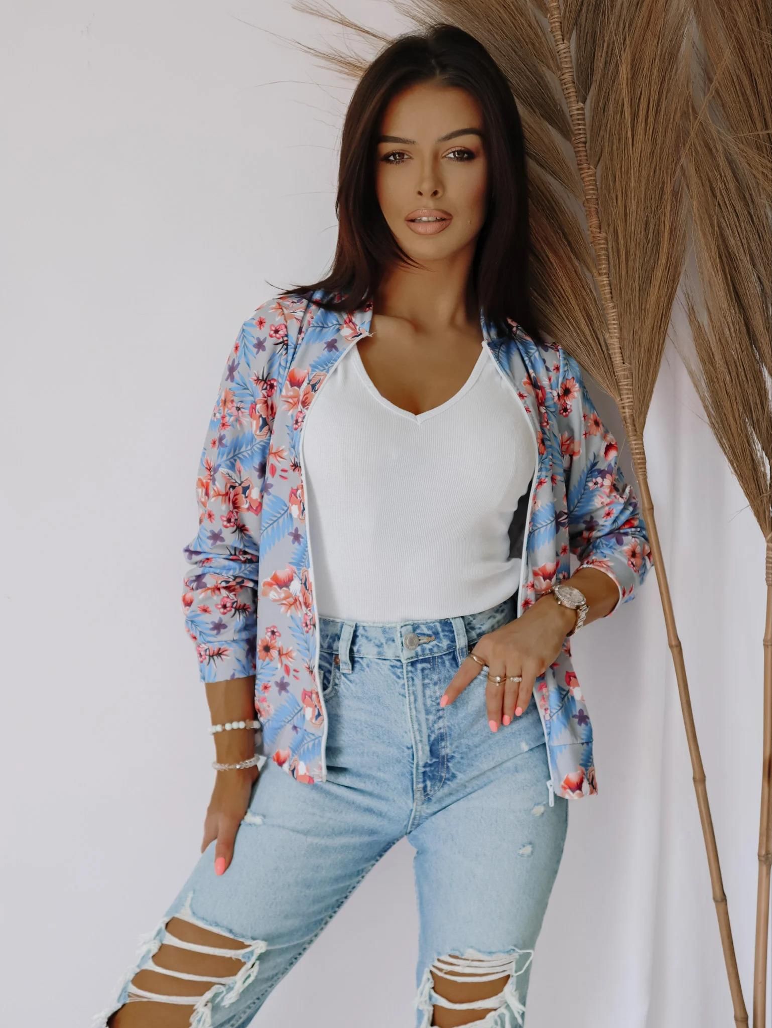 Bluza na suwak w KWIATY - SZARY - Uniwersalny Łódź