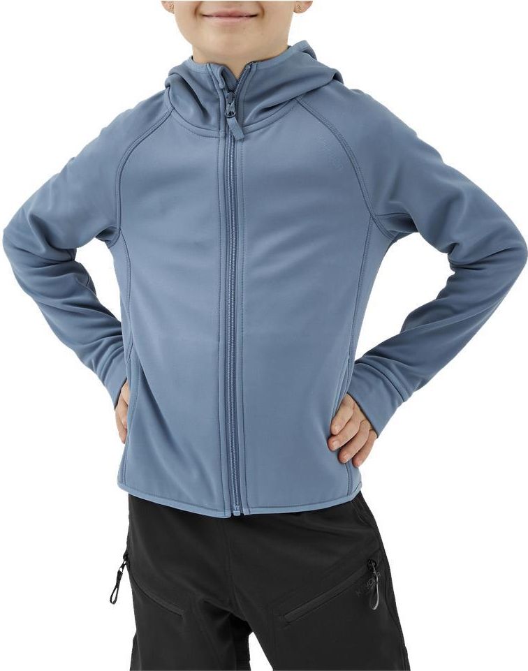 Rozciągliwa bluza z miękką polarową podszewką. Otwory na kciuki w mankietach i dwie otwarte kieszenie.