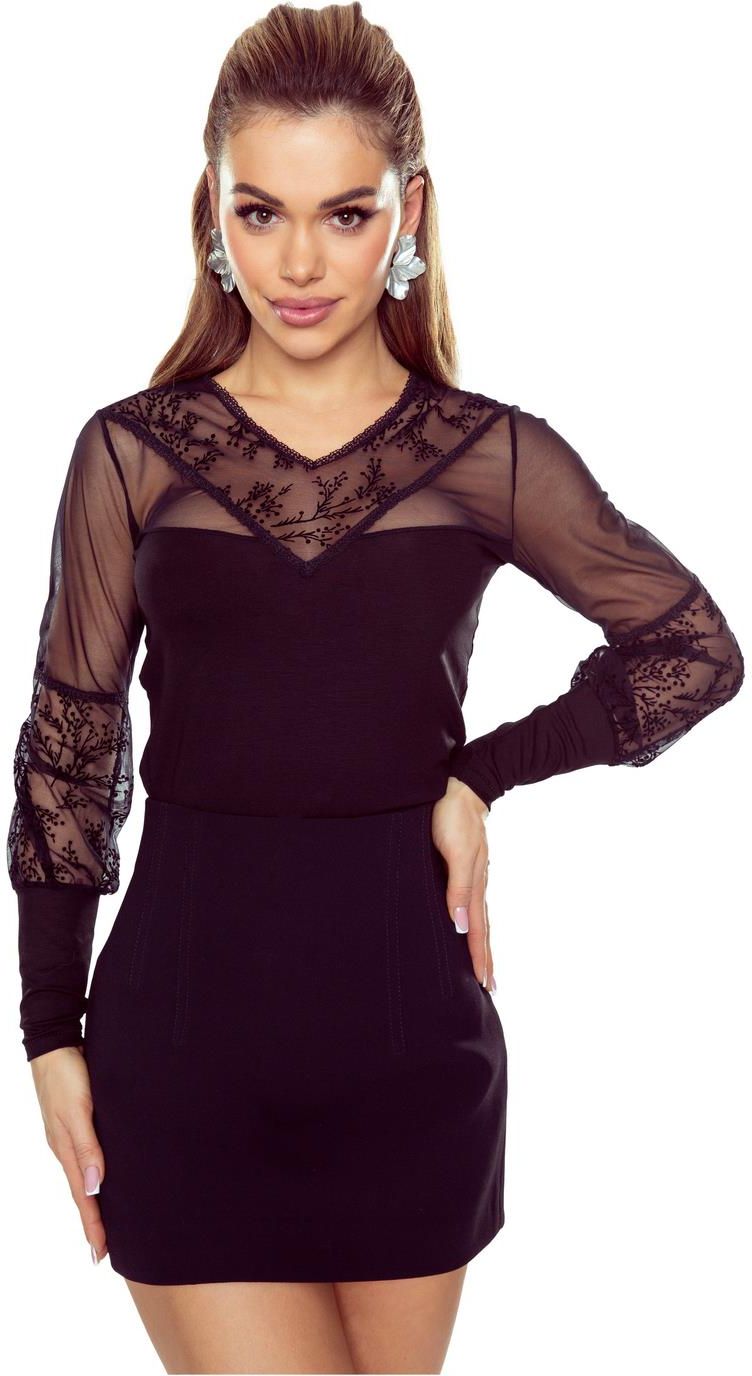 Bluzka damska z długimi tiulowymi bufiastymi rękawami Justa czarna Łódź