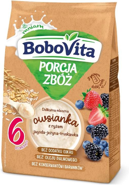 Opinie BoboVita Porcja Zbóż mleczna owsianka z ryżem jagoda jeżyna i truskawka po 6. miesiącu życia 210g Łódź