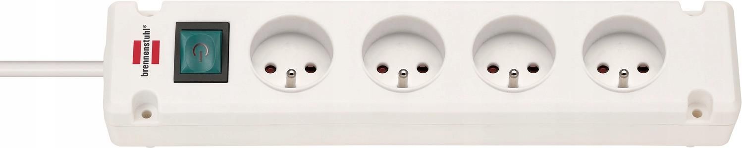 Listwa zasilająca Bremounta 4 gniazda 1,5m biała Brennenstuhl 1150651124 Brennenstuhl Listwa zasilająca linii Bremounta posiada cztery otwory na krańcach obudowy ,dzięki czemu możemy przykręcić ją do ściany w dowolnym miejscu zarówno w pionie jak i w poziomie. Delikatnie podświetlany włącznik nie oślepia a pozwala na ciągłą kontrole czy urządzenia podłączone do listwy są gotowe do pracy. Dodatkowo zabezpieczenie Child Protection pozwala uniknąć przypadkowego porażenia. Parametry listwy zasilającej Bremounta: 4 gniazda z uziemieniem w układzie 90°, również dla wtyczek kątowych. 1,5m kabel o parametrach H05VV-F 3G1,55. Prąd znamionowy 16 A. Maksymalne obciążenie 3500 W. Możliwość zamocowania na ścianie dzięki otworom na 4 brzegach listwy. Podświetlany włącznik. Kształtny design. Długość: 31,50 cm Szerokość: 6,50 cm Długość kabla: 1,50 m Wysokość: 8,50 cm Sposób mocowania: mocowanie za pomocą śruby Rodzaj wtyczki: kątowa Ciężar: 0,48 kg Liczba gniazdek łącznie: 4 Kolor obudowy: biały Listwa zasilająca linii Bremounta w kolorze białym posiada 4 gniazda, kabel o długości 1,5m i parametrach H05VV-F 3G1,5: 4 gniazdowa listwa z uziemieniem, ochroną Child Protect i kablem o długości 1,5m. Z praktycznymi otworami w obudowie umożliwiającymi przykręcenie listwy do ściany. Delikatnie podświetlany nieoślepiający włącznik. Klasyczna, estetyczna obudowa. Brennenstuhl