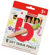 Bruynzeel-Sakura Shorties kredki miękkie, grube zaprojektowane dla najmłodszych użytkowników (powyżej 3 lat) dlugośc kredki: 120mm, wkład: 8mm zestaw zawiera 6 kolorów kredek: niebieski zielony żółty czerwony pomarańczowy brązowy 1 szt temperówka (fi 8mm) polecany szczególnie dla przedszkolaków ze względu na doskonałą jakość i funkcjonalność przebadane są dermatologicznie; kredki są nietoksyczne super zmywalne z rąk i ubrań za pomocą wody, bez użycia detergentów kredki są krótkie i grube co sprawia, że są idealnie przystosowane do dzieciecychrączek posiadają miękki grafit i piękne barwy łatwe do temperowania każda kredka lakierowana bezbarwnym lakierem, końcówka lakierowana na kolor odpowiadający kredce (zapewnia doskonałą identyfikację kolorów) opakowanie: estetyczne pudełko kartonowe; kredki umieszczone na wysuwanej tacce
