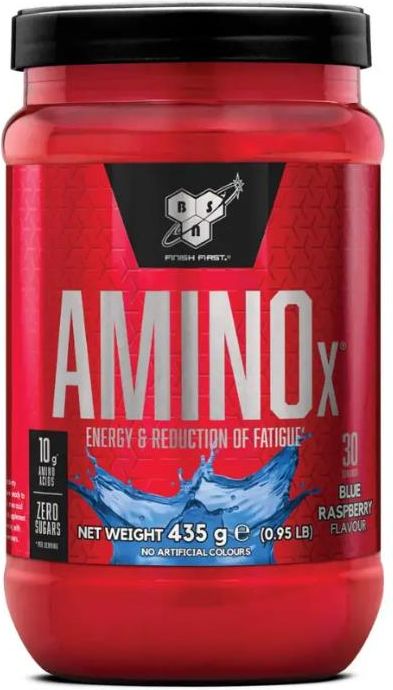 Amino X został zaprojektowany, aby wspierać: syntezę białka/ anabolizm, resyntezę glikogenu, insulino-wrażliwość, procesy anty-kataboliczne, oszczędzające mięśnie, wytrzymałość mięśni, odporność na zmęczenie mięśni. Zalety BSN Amino X: Pierwszy na świecie musujący produkt aminokwasowy. 10 g zmikronizowanych anty-katabolicznych aminokwasów w 1 porcji. 0 g cukru w 1 porcji. 500g jednostek anabolicznej witaminy D w 1 porcji. Nie zawiera kofeiny – może być stosowany o każdej porze dnia i nocy. Ulega całkowitemu rozmieszaniu – nie tworzą się grudki. SKŁADNIKI AKTYWNE: Amino X (fruit punch) Porcja: 14,5g Ilość porcji w opakowaniu: 30 Opakowanie: 435g Zawartość: w porcji zaw: % ZDS* Witamina B6 0,5 mg 35% Witamina D 2,45 mcg 49% Sód 160 mg -- Aminokwasy Mikronizowane: 10 g l-alanina 3,5 g l-arginina 45 mg tauryna 2,5 g - Aminokwasy BCAA 4 g l-leucyna 2 g l-izoleucyna 1 g l-walina 1 g Składniki: mieszanka aminokwasów (-leucyna, l-izoleucyna, l-walina, l-alanina, tauryna, l-arginina), emulgator - lecytyna sojowa, regulator kwasowości (kwas cytrynowy, kwas jabłkowy, węglan sodu), aromat, barwnik: czerwień buraczana, substancje słodzące (sukraloza, acesulfam K), witaminy (cholekalcyferol, chlorowodorek pirydoksyny). * % Zalecanego dziennego spożycia