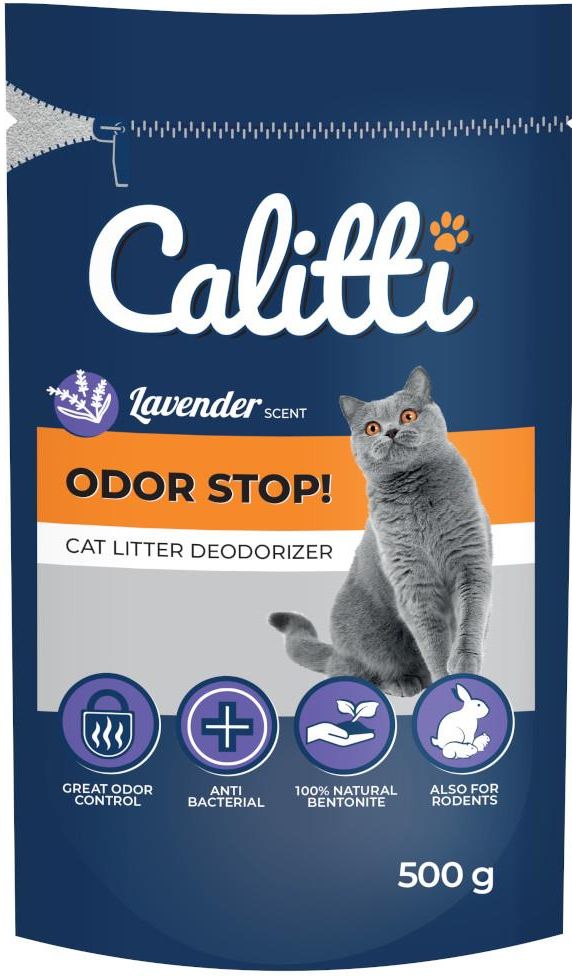 Calitti Odor Stop 500g to neutralizator zapachów w formie granulatu, przeznaczony do stosowania w kuwetach dla kotów. Wykonany z naturalnego bentonitu, skutecznie pochłania nieprzyjemne zapachy i działa antybakteryjnie, zapewniając świeżość i higienę w otoczeniu zwierząt. Produkt nadaje się do wszystkich rodzajów żwirków, w tym bentonitowych i drewnianych. Może być stosowany również w przypadku innych zwierząt domowych, takich jak gryzonie czy króliki.