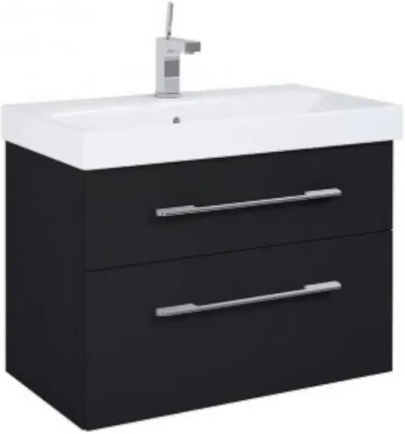 Dane techniczne: Kolor: czarny połysk Szerokość: 80cm Wysokość:540 Głębokość:41,5 cm Montaż: wiszący Materiał: płyta meblowa 2 szuflady Prowadnice Soft-Close Pełen wysuw Szafki fabrycznie zmontowane Do kompletowania z umywalką z seriiMADRID Do kompletowania z uchwytami z serii MADRID