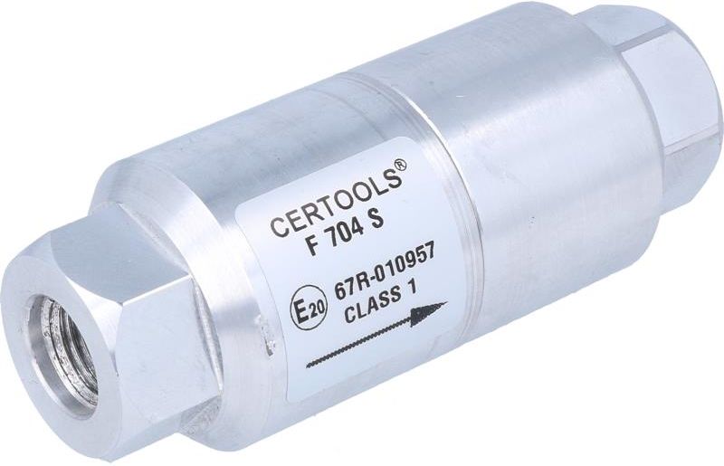 Opis produktu Filtr fazy ciekłej LPG bez przyłączy. Opis zastosowania Zespół filtrujący wielorakiego zastosowania, w zależności od zastosowanych końcówek może być stosowany do jedenastokilogramowych butli propan-butan w wózkach widłowych, przyczepach kempingowych, kamperach, kompresorach i pojazdach wolnobieżnych, a także na przewodzie zasilającym w samochodowych instalacjach LPG. Dane techniczne Filtr fazy ciekłej wielokrotnego użytku z brązu spiekanego (CF-110) w aluminiowej obudowie, z obu stron gniazda z gwintem calowym G1/4 cala. Maksymalne ciśnienie robocze 3000 kPa, zakres temperatur od -20 stopni Celsjusza do 120 stopni Celsjusza. Cechy produktu Wkład: ceramiczny Model filtra: F-704S-AL Informacje dodatkowe Kod produktu Nagaz: 30.CRT.859 Producent: CERTOOLS Kod producenta: 0345704S-AL Numer homologacji: E20-67R-010957