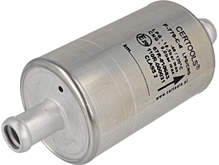 Opis produktu Filtr fazy lotnej CERTOOLS - F779/C-D 14/14 (bibuła, jednorazowy) - jednorazowy filtr fazy lotnej F-779-C-d firmy CERTOOLS. Opis zastosowania Filtr fazy lotnej CERTOOLS - F779/C-D 14/14 (bibuła, jednorazowy) - filtr fazy lotnej LPG stosowany w części niskociśnieniowej samochodowych instalacji gazowych IV generacji (sekwencyjnych wtrysków gazu w fazie lotnej). Montowany pomiędzy reduktorem, parownikiem a czujnikiem ciśnienia i listwą wtryskiwaczy LPG, chroni te elementy przed zanieczyszczeniami mogącymi pojawić się w autogazie. Dane techniczne Filtr fazy lotnej CERTOOLS - F779/C-D 14/14 (bibuła, jednorazowy): materiał obudowy - stop aluminium. materiał filtracyjny - bibuła (papier filtracyjny), średnica króćców - 14 mm, kierunek przepływu gazu - określony na obudowie, ciśnienie kwalifikacyjne - 450 kPa, zakres zalecanej temperatury pracy - od -40 do 120 celsjuszy, homologacja na LPG - E20-67R-010663, homologacja na CNG - E20-110R-000031, zalecana wymiana - co 10 000 km lub zgodnie z wymaganiami producenta. Cechy produktu Typ filtra: jednorazowy Wkład: bibuła (papier) Wejście: 14 mm Wyjście: 14 mm Obudowa: metal Sposób montażu: na przewodzie Informacje dodatkowe Kod produktu Nagaz: 32.CRT.532 Producent: CERTOOLS Kod producenta: 53-779-01414J Numer homologacji: E20-67R-010663