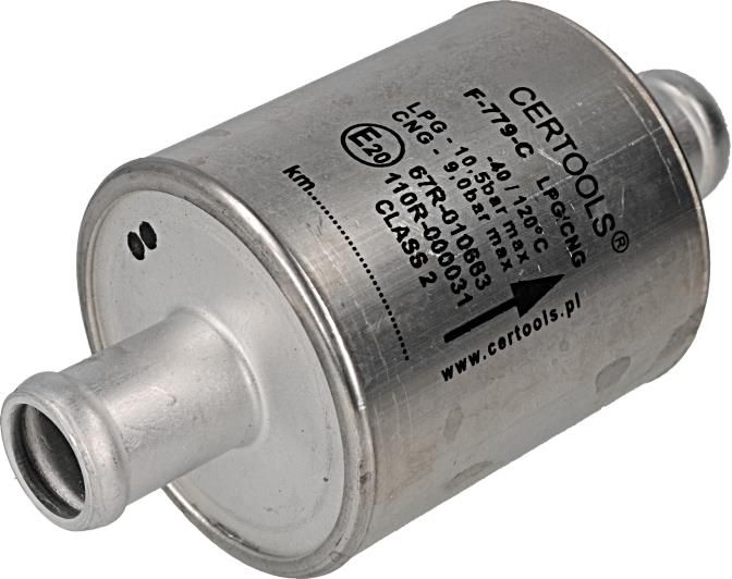 Opis produktu Filtr fazy lotnej model F-779-C firmy Certools. Zalecana wymiana filtra co 20 000 km. Opis zastosowania Filtr fazy lotnej stosowany w układach czwartej generacji, sekwencyjnego wtrysku gazu w fazie lotnej, chroni listwę wtryskiwaczy przed zanieczyszczeniem i uszkodzeniem. Dane …