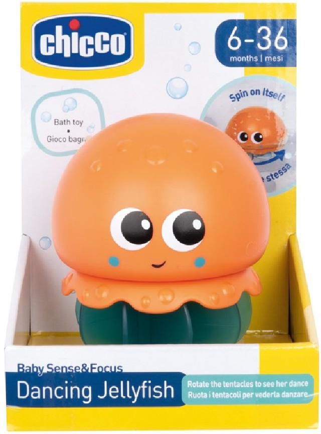 Chicco Tańcząca Meduza Zabawna tańcząca i obracająca się meduza, która towarzyszy dziecku podczas kąpieli Meduza zamieni zwykłą kąpiel w wodną przygodę i przekona do niej nawet tych, którzy bardzo nie lubią się myć! Zabawka tańczy i obraca się zabawianie wokół własnej osi, wirując w wodzie. Obracaj macki, aby zobaczyć, jak meduza obraca się sama wokół siebie, gdy jest w wodzie. Meduza delikatnie unosi się na wodzie. Doskonała do zabawy i umilania kąpieli dziecka. Informacje techniczne: - Wymiary: 8.00 x 8.00 x 9.50 cm - Wymiary opakowania: 11.00 x 9.50 x 15.00 cm