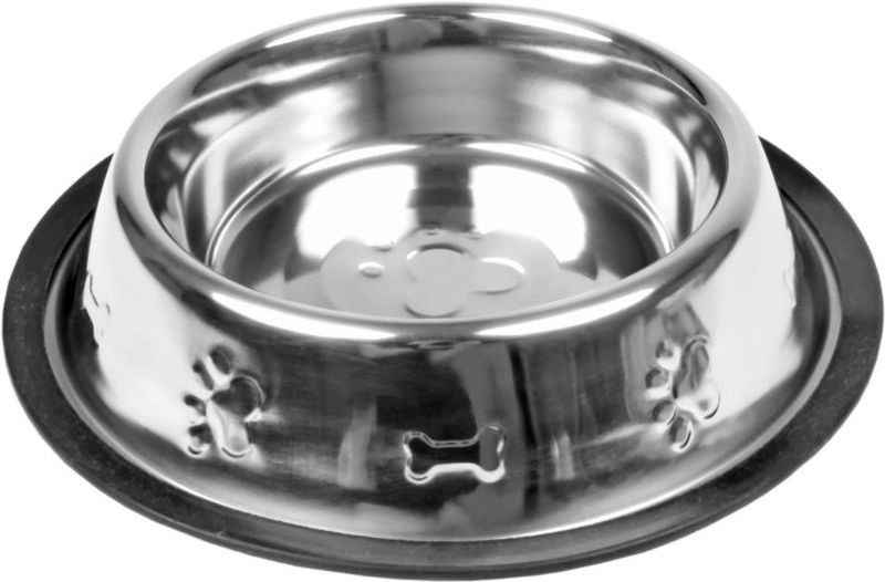 CHICO miska metalowa na gumie ozdobna Miska metalowa, z wytłoczonymi wokół wzorkami Charakteryzuje się dużą trwałością, gdyż nie zostanie szybko pogryziona przez zwierzę. Ponadto miski metalowe sa cięższe od innych dlatego nie przesuwają się tak łatwo. Dodatkowo zostały wyposażone w antypoślizgową gumę zapobiegającą rysowaniu podłóg. Gumę można bardzo łatwo zdjąć, przez co miska nadaje się do czyszczenia w zmywarce. Wykonana z całkowicie nierdzewnego metalu. Miski występują w różnych pojemnościach: 0,24L Pojemność bryły: 0,24 L Pojemność użytkowa: ok. 0,18 l Średnica na górze: ok. 11,5 cm Wysokość: ok. 3,5 cm 0,47L Pojemność bryły: 0,47 L Pojemność użytkowa: ok. 0,46 l Średnica na górze: ok. 15 cm Wysokość: ok. 4,5 cm 0,71L Pojemność bryły: 0,71 L Pojemność użytkowa: ok. 0,6 l Średnica na górze: ok. 17 cm Wysokość: ok. 5,5 cm 0,95L Pojemność bryły: 0,95 L Pojemność użytkowa: ok. 0,9 l Średnica na górze: ok. 18 cm Wysokość: ok. 6,5 cm 1,89L Pojemność bryły: 1,89 L Pojemność użytkowa: ok. 1,2 l Średnica na górze: ok. 22 cm Wysokość: ok. 7,5 cm 2,84L Pojemność bryły: 2,84 L Pojemność użytkowa: ok. 2 l Średnica na górze: ok. 25 cm Wysokość: ok. 8 cm