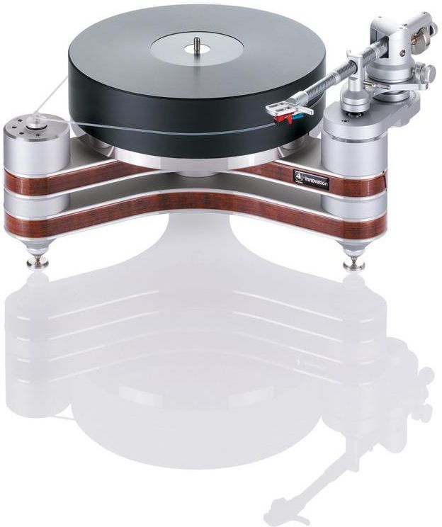 Specyfikacja Szczegóły konstrukcyjne Kształt podwozia zoptymalizowany pod kątem rezonansu, napęd pasowy z regulacją prędkości Geometria napędu zoptymalizowana pod kątem rezonansu Konstrukcja warstwowa ze sklejki i aluminium Regulowana wysokość nóżek napędu Kontrola prędkości optycznej (OSC) Możliwy montaż na dwóch ramionach Zmiana biegów Wygodna zmiana prędkości obrotowej za pomocą przycisku pomiędzy 33 1/3 obr./min, 45 obr./min i 78 obr./min Silnik Silnik prądu stałego o wysokim momencie obrotowym, wyprodukowany specjalnie dla Clearaudio. Elektroniczna kontrola prędkości „OSC” w czasie rzeczywistym za pomocą czujnika podczerwieni. System łożyskowy Opatentowana przez Clearaudio technologia łożysk CMB. Odwrócony ceramiczny wał łożyskowy, szlifowany i polerowany, piasta z brązu spiekanego, w tym opatentowana technologia łożysk magnetycznych CMB. Materiał płyty Powierzchnia obrabiana precyzyjnie CNC, solidny 15-milimetrowy podtalerz ze stali nierdzewnej, dynamicznie wyważony 70-milimetrowy talerz główny, wykonany z materiału PM o dużej gęstości i doskonałej stabilności wymiarowej, dynamicznie wyważony Wysokość płyty Płyta główna 70 mm, płyta pomocnicza ze stali nierdzewnej 15 mm Więcej funkcji specjalnych Wszystkie mocowania talerzy umożliwiają precyzyjną regulację Optyczna kontrola prędkości (OSC) Opcjonalne przesunięcie wrzeciona w celu kompensacji bicia w przypadku niektórych płyt LP Możliwość odtwarzania z dwoma ramionami Dokładność prędkości (mierzona) ZUŻYCIE ENERGII Maksymalny pobór mocy: 9,3 W Podczas pracy: 2,5 W W trybie gotowości: 2,5 W Wyłączony: 0 W Całkowita waga Około 24 kg (bez ramienia i zasilacza) Wymiary (szerokość x wysokość x głębokość) 460 mm x 220 mm x 485 mm (bez ramienia) W świecie budowy gramofonów innowacja to najnowszy technologiczny prototyp i technologiczny model do naśladowania w świecie budowy gramofonów. Czujnik podczerwieni w połączeniu z systemem optycznej kontroli prędkości Clearaudio (OSC) zapewnia doskonałą stabilność prędkości obrotowej – warunek konieczny do optymalnego odsłuchu płyt winylowych. Oddzielnie umieszczony silnik prądu stałego o wysokim momencie obrotowym z łatwością obraca talerz o grubości 70 mm, precyzyjnie wykonany z akrylu o wysokiej gęstości. Talerz obraca się praktycznie bez tarcia na 15-milimetrowym talerzu pomocniczym ze stali nierdzewnej, dzięki opatentowanemu przez Clearaudio ceramicznemu łożysku magnetycznemu (CMB). Płyty winylowe można odtwarzać z trzema różnymi prędkościami obrotowymi; prędkość obrotową można łatwo wybrać jednym naciśnięciem przycisku, a gramofon umożliwia instalację drugiego ramienia.