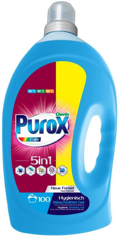 Clovin Żel do prania Purox Color 3000ml Żel do prania Purox wyróżnia wygoda użytkowania i uniwersalność. Formuła żelu sprawia, że produkt doskonale wypłukuje się z tkanin i nie zostaje w szufladzie pralki. Idealny również do prania ręcznego, chroni pralkę przed osadzaniem się kamienia. Uniwersalny produkt do wszystkich typów prania Żel do prania Purox to uniwersalny produkt do prania najwyższej jakości. Stworzony z myślą o wygodzie konsumentów, sprawdzi się we wszystkich rodzajach prania mechanicznego, a dodatkowo jest polecany dla zwolenników delikatnego prania ręcznego. Dzięki nowoczesnej formule żelu doskonale się rozpuszcza, nie pozostaje na tkaninach ani w szufladzie pralki. Jest bezpieczny dla tkanin kolorowych i doskonale sprawdzi się w praniu jasnych ubrań. Polecany do prania średnich i lekkich zabrudzeń. Żel do prania Purox to świetne rozwiązanie dla użytkowników, którzy cenią wygodę i uniwersalność. Płyn nadaje się do prania tkanin jasnych i kolorowych, idealny do prania ręcznego i mechanicznego. To również wyjątkowo wydajny produkt, który wystarczy na dłużej. Bez fosforanów Ekonomiczny i wydajny Skuteczny w walce z lekkimi i średnimi zabrudzeniami Wygodna formuła żelu Stworzony do prania mechanicznego i ręcznego Pielęgnuje kolor na dłużej Bezpieczny dla środowiska naturalnego i pralki Żel do prania Purox powstał z myślą o ochronie przyrody. Specjalnie skomponowany skład wolny jest od i fosforanów, ponieważ są to składniki trudno biodegradowalne i szkodliwe dla środowiska naturalnego. Żel jest polecany dla wszystkich, którzy chcą prać skutecznie i ekologicznie. Ponadto skoncentrowana formuła żelu sprawia, że produkt doskonale się rozpuszcza i nie pozostaje na tkaninie. Wypłukiwanie żelu z tkanin jest bardzo istotne, ponieważ pozwala zmniejszyć ryzyko podrażnień skóry.