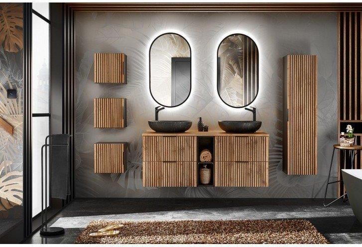 Comad Xilo Black 81-01-A CU-COC-834012 FSC Szafki wiszące to niezwykle praktyczne i stylowe rozwiązanie do każdej łazienki. Dzięki nim możemy maksymalnie wykorzystać dostępną przestrzeń, tworząc funkcjonalne i estetyczne wnętrze. Jednym z wyróżniających się produktów w tej kategorii jest Comad Xilo Black 81-01-A. Szafka ta łączy w sobie elegancję i nowoczesność, a jej unikalny design i praktyczne cechy sprawiają, że jest idealnym wyborem dla wymagających użytkowników. Wymiary i pojemność Jednym z kluczowych aspektów każdej szafki wiszącej są jej wymiary. Comad Xilo Black 81-01-A ma wysokość 57 cm, szerokość 20 cm oraz głębokość 46 cm. Te kompaktowe wymiary sprawiają, że szafka ta doskonale wpasuje się nawet w niewielkie łazienki, oferując jednocześnie wystarczającą ilość miejsca na przechowywanie niezbędnych akcesoriów łazienkowych. Materiały i wykończenie Szafka wykonana jest z wysokiej jakości płyty laminowanej, co gwarantuje jej trwałość i odporność na uszkodzenia. Czarne wykończenie nadaje meblowi eleganckiego wyglądu, który doskonale komponuje się z różnorodnymi stylami wnętrz łazienkowych. Dodatkowo, pionowe ryflowanie oraz zintegrowany podchwyt dodają szafce nowoczesnego charakteru. Konstrukcja i montaż Comad Xilo Black 81-01-A to szafka wisząca, co oznacza, że można ją łatwo zamontować na ścianie, oszczędzając przy tym miejsce na podłodze. Wewnętrzna organizacja szafki pozwala na przechowywanie różnych przedmiotów, a bryły łączone za pomocą złączy mimośrodowych oraz kołków drewnianych zapewniają stabilność i wytrzymałość konstrukcji. Odporność i dodatkowe funkcjonalności Szafka jest odporna na wilgoć, co jest niezwykle ważne w przypadku mebli łazienkowych. Dzięki temu można być pewnym, że będzie ona służyć przez długie lata bez obaw o jej stan techniczny. Dodatkowo możliwość połączenia szafki z innymi elementami kolekcji Xilo Black, takimi jak szafki pod umywalkę czy blaty, pozwala na swobodne tworzenie różnorodnych zestawów meblowych w łazience. Zalety produktu Poniżej przedstawiamy najważniejsze zalety Comad Xilo Black 81-01-A: wysoka jakość wykonania z płyty laminowanej, kompaktowe wymiary idealne do małych łazienek, eleganckie czarne wykończenie z pionowym ryflowaniem, możliwość montażu na ścianie, odporność na wilgoć, zintegrowany podchwyt dla nowoczesnego wyglądu. Kompatybilność i standardy Comad Xilo Black 81-01-A jest zgodna ze standardowymi wymiarami mebli łazienkowych, co ułatwia jej integrację z innymi elementami wyposażenia wnętrza. Możliwość połączenia szafki z innymi meblami z kolekcji Xilo Black, takimi jak szafki pod umywalkę czy dolne regały, pozwala na stworzenie spójnej i funkcjonalnej aranżacji łazienki. Podsumowanie Comad Xilo Black 81-01-A to elegancka i nowoczesna szafka wisząca, która świetnie sprawdzi się w każdej łazience. Jej kompaktowe wymiary oraz wysoka jakość wykonania gwarantują funkcjonalność i trwałość na długie lata. Odporność na wilgoć oraz możliwość swobodnego tworzenia zestawów meblowych stanowią dodatkowe atuty tego produktu. Jeśli poszukujesz praktycznego i stylowego rozwiązania do swojej łazienki, warto rozważyć wybór tej szafki.