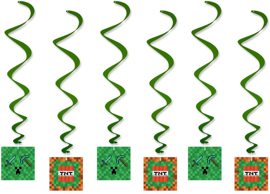 ŚWIDERKI MINECRAFT PIKSELE PIXELE DEKORACJA WISZĄCA 6SZT TNT CREEPER Świderki wiszące – motyw pixel, zestaw 6 sztuk Dekoracyjne świderki to efektowny sposób na urozmaicenie wystroju sali podczas przyjęcia w klimacie pixelowym. Zielone spirale zakończone kartonikami z nadrukiem miecza, kilofa, TNT …