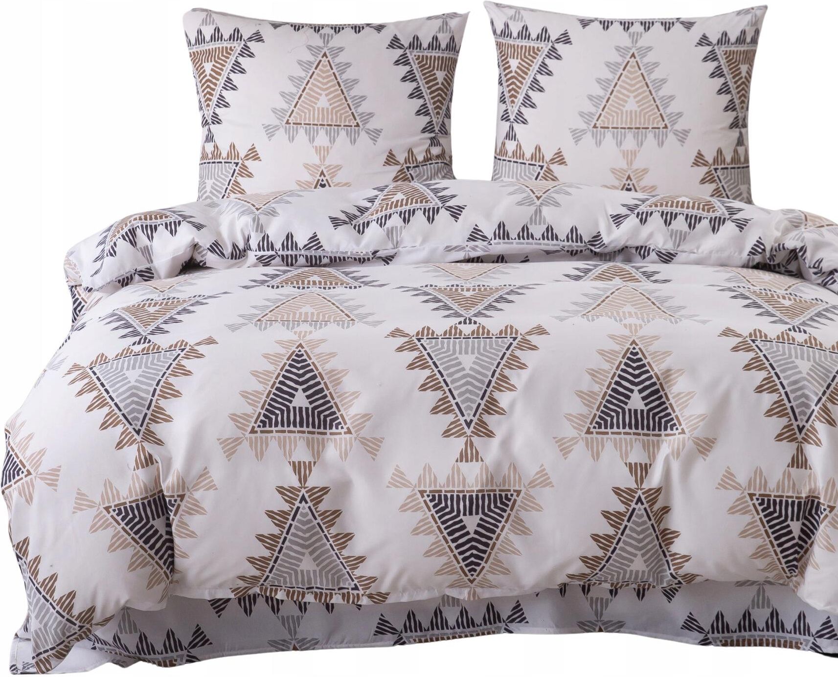 Cotton World Komplet pościeli dwustronnej 160x200 biała beżowa szara azteckie trójkąty (1766736878) Łódź