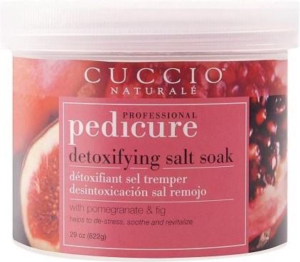 Sól oczyszczająca z figą i granatem do moczenia stóp, dłoni i ciała Dzięki naturalnym kosmetykom do moczenia ciała, stóp i dłoni, możesz przeprowadzać zabiegi SPA w domowym zaciszu. Pod tym kątem świetnym wyborem będzie sól oczyszczająca do stóp, dłoni i ciała o wielotorowym działaniu. Kosmetyk doskonale sprawdza się między innymi jako preparat silnie zmiękczający. Już po kilkuminutowej kąpieli Twoja skóra stanie się gładsza, również w obszarach zrogowacenia. Produkt jest dobrym wyborem także pod kątem dogłębnego oczyszczania - wnika w głębokie partie skóry i usuwa z niej zanieczyszczenia. Warto też zwrócić uwagę na jego właściwości relaksacyjne. Sól może być wykorzystywana w aromaterapii - jej delikatny zapach wspaniale uspokaja i wprowadza w błogi nastrój. Sprawdzi się w kąpieli odprężającej, dogłębnie odżywiając Twoją skórę. Dlaczego warto wybrać sól oczyszczającą Cuccio? Wyjątkowa sól do moczenia stóp, dłoni i ciała z figą i granatem jest kosmetykiem na bazie naturalnych komponentów. Dzięki temu może być stosowana nawet w przypadku wrażliwej skóry, skłonnej do reakcji alergicznych. Ma działanie antybakteryjne, dlatego sprawdzi się także w przypadku osób, które często zmagają się z dolegliwościami skórnymi o podłożu bakteryjnym. Sól jest bardzo wydajna - wystarczy wsypać do miski zaledwie 2 łyżeczki, aby przygotować kąpiel dla stóp lub dłoni. Kosmetyk spełni oczekiwania pań, którym zależy na natychmiastowych rezultatach - już po jednej kąpieli widać efekt zmiękczenia skóry. Oczyszczająca i nawilżająca sól do moczenia - Figa i Granat Zastosowanie: dłonie, stopy i ciało Pojemność: 822 g Sposób użycia: Napełnić miskę ciepłą wodą. Wsypać 2 łyżki soli do przygotowanej wody. Moczyć nogi przez 3-5 minut. Po wyjęciu stóp z kąpieli, można rozpocząć zabieg pedicure.