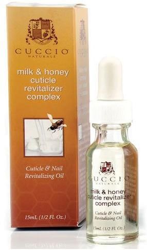 Aktywna Pielęgnacja Skórek Twoje paznokcie jeszcze mocniejsze, skórki bardziej zadbane, a skóra wokół paznokci lepiej nawilżona? To wszystko dzięki odżywce Cuccio o zapachu miodu i mleka. Naturalnie rewitalizujący kompleks miodowo mleczny, zawiera: pro-witaminę B5; witaminy A, E, F; kwasy zbożowe; olejek z kiełków zbóż; siarkę; olejek z pestek jojoby; gliceryna oraz miód i mleko. Dogłębnie nawilża i odżywia skórki oraz paznokcie. Butelka z pipetką, dzięki której użycie odżywki jest niezwykle łatwe i precyzyjne. Pojemność 15 ml