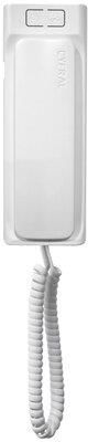 Unifon Cyfral BALTIC Analogowy 2-żyłowy BIAŁY Unifon BALTIC – analogowa słuchawka domofonowa, dwuprzewodowa typu BALTIC przeznaczona jest do instalacji analogowych i analogowo – cyfrowych CYFRAL. Współpraca systemowa: CC1000, CC1500, CC1550 oraz TD3, TD4, TD6, panelem domofonowym COSMO R1/R2. Praca w systemach analogowych, 2-przewodowych – wyłącznie produkcji CYFRAL. Cechy charakterystyczne unifonu BALTIC klawisze funkcyjne umieszczone na bazie podstawy nad słuchawką 1 przycisk – funkcja otwieranie drzwi wejściowych 2 przycisk – wielofunkcyjny umożliwiający np. otwieranie bramy magnetyczna słuchawka regulacja głośności wywołania z możliwością wyłączenia (3 stopnie) sekretność rozmów – brak podsłuchu między lokatorami, możliwość prostego przekształcenia aparatu na wersję z podsłuchem montaż przewodów bez konieczności lutowania wykończenie: MAT Wymiary Wysokość: 225 mm Szerokość: 80 mm Głębokość: 41 mm Waga: 280g