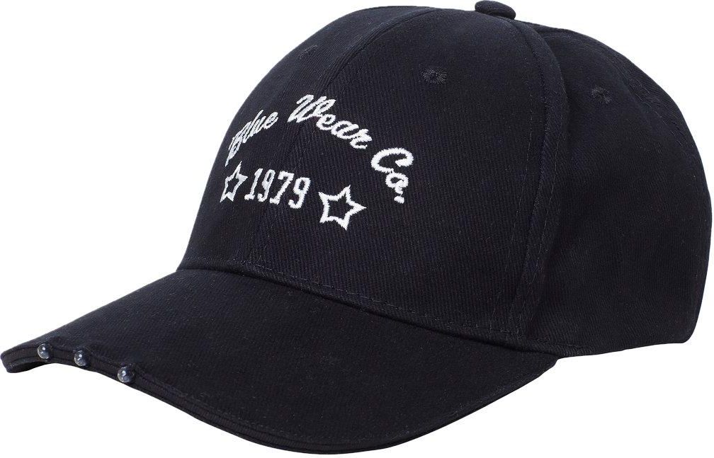 Czapka z daszkiem Czapka z daszkiem z trzema diodami LED na daszku. Czapka z daszkiem marki Bluewear została wykonana w 100% z bawełny i ozdobiona ładnym haftem z przodu! Rozmiar można łatwo regulować dzięki zapięciu na rzep. Trzy diody LED na daszku Diody LED można włączać i wyłączać za pomocą przełącznika znajdującego się z prawej strony daszka. Diody są zasilane dwiema wymiennymi bateriami CR2032 ukrytymi w pasku czapki. Specyfikacja techniczna Gwarancja (w miesiącach): 12 m. Materiał: Bawełna 100%