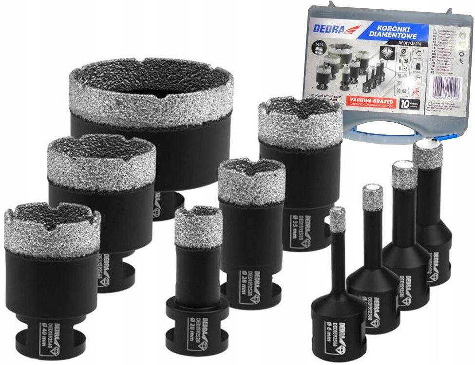 ZESTAW KORONEK DIAMENTOWYCH VB DEDRA DED1592SZ07 10SZT: 6,8,10,12,20,28,35,40,45,68MM – Profesjonalny zestaw do precyzyjnego wiercenia ZESTAW KORONEK DIAMENTOWYCH VB DEDRA DED1592SZ07 10SZT to kompletny, profesjonalny zestaw narzędzi dedykowany do wykonywania otworów w szerokiej gamie materiałów …