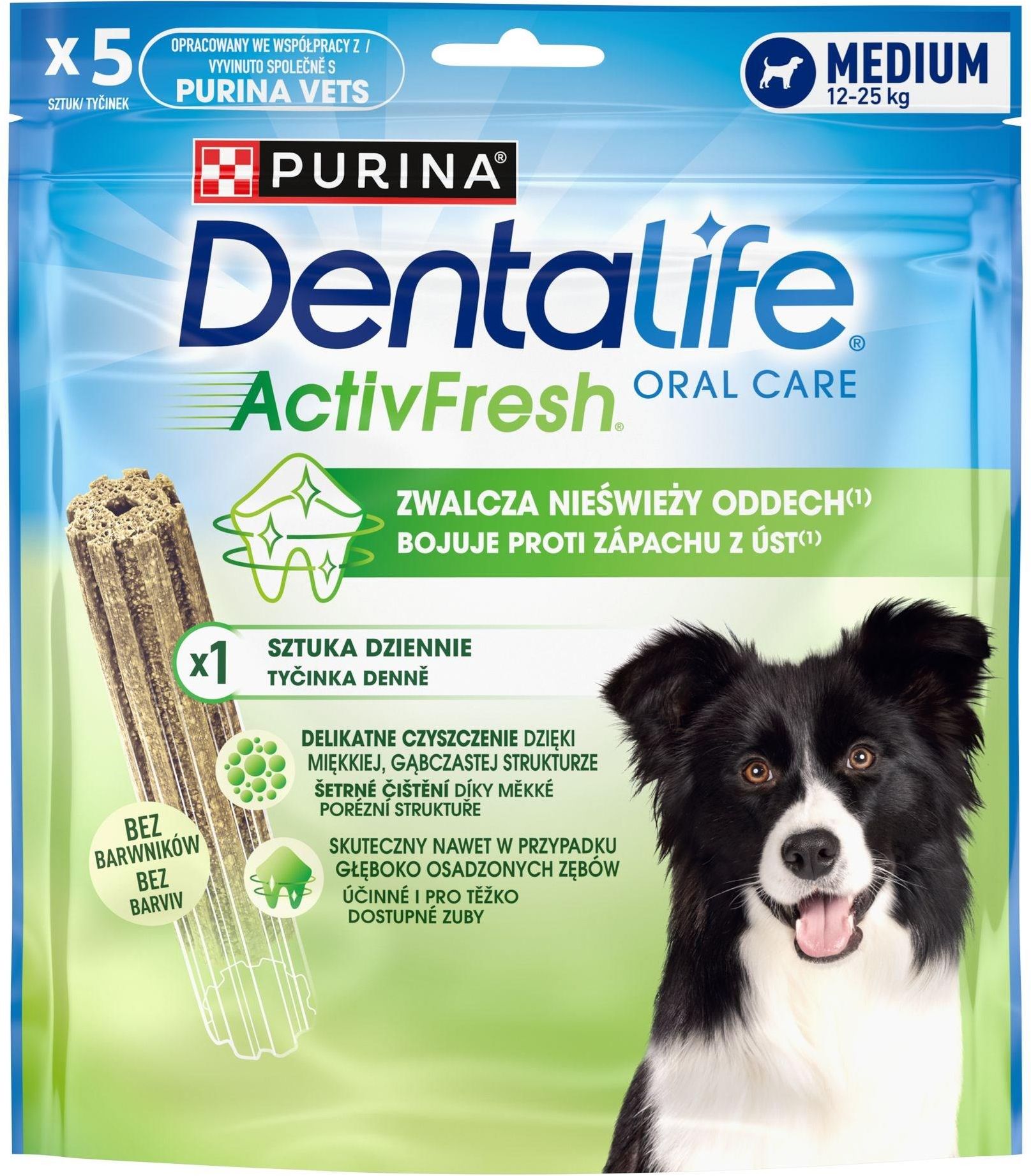 Purina Dentalife ActivFresh Medium Przysmaki Stomatologiczne 5szt. 115G Purina ® DentaLife ® ActivFresh ® to przekąski dentystyczne dla dorosłych psów. Specjalnie zaprojektowane dla Twojego psa rasy średniej. Zdrowie zębów Twojego psa jest niezwykle ważne dla jego dobrego samopoczucia i …