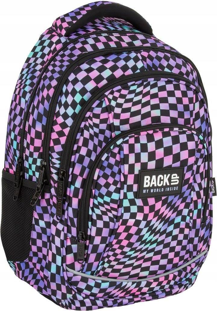 BACK UP plecak szkolny A 20 Szachownica Crazy Plecak dedykowany uczniom klas od 3 szkoły podstawowej. Falująca crazy kratka. Coś, czym wyróżnisz się z tłumu. Linie kratki zdają się wirować, tworząc iluzję ruchu i głębi, a subtelne przejścia między intensywnym fioletem i miękkim turkusem nadają …